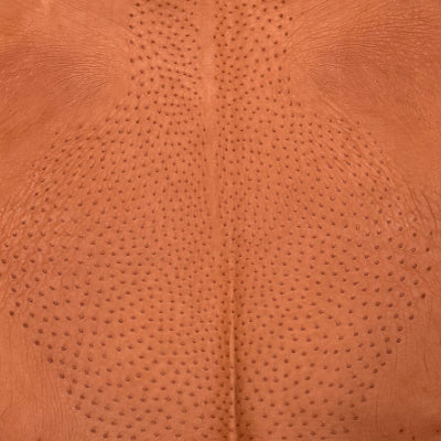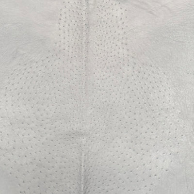 Piel genuina de avestruz reconocida por su distintivo patron de foliculos naturales (full quill), que aporta una textura suave, elegante y altamente resistente proviniente de Sudafrica, ideal para botas, bolsos y articulos de lujo.